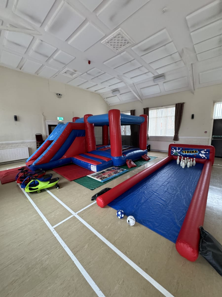 Fantastic local hall, All our inflatables will fit in here, great size hall which will easily accommodate 2 inflatables,
